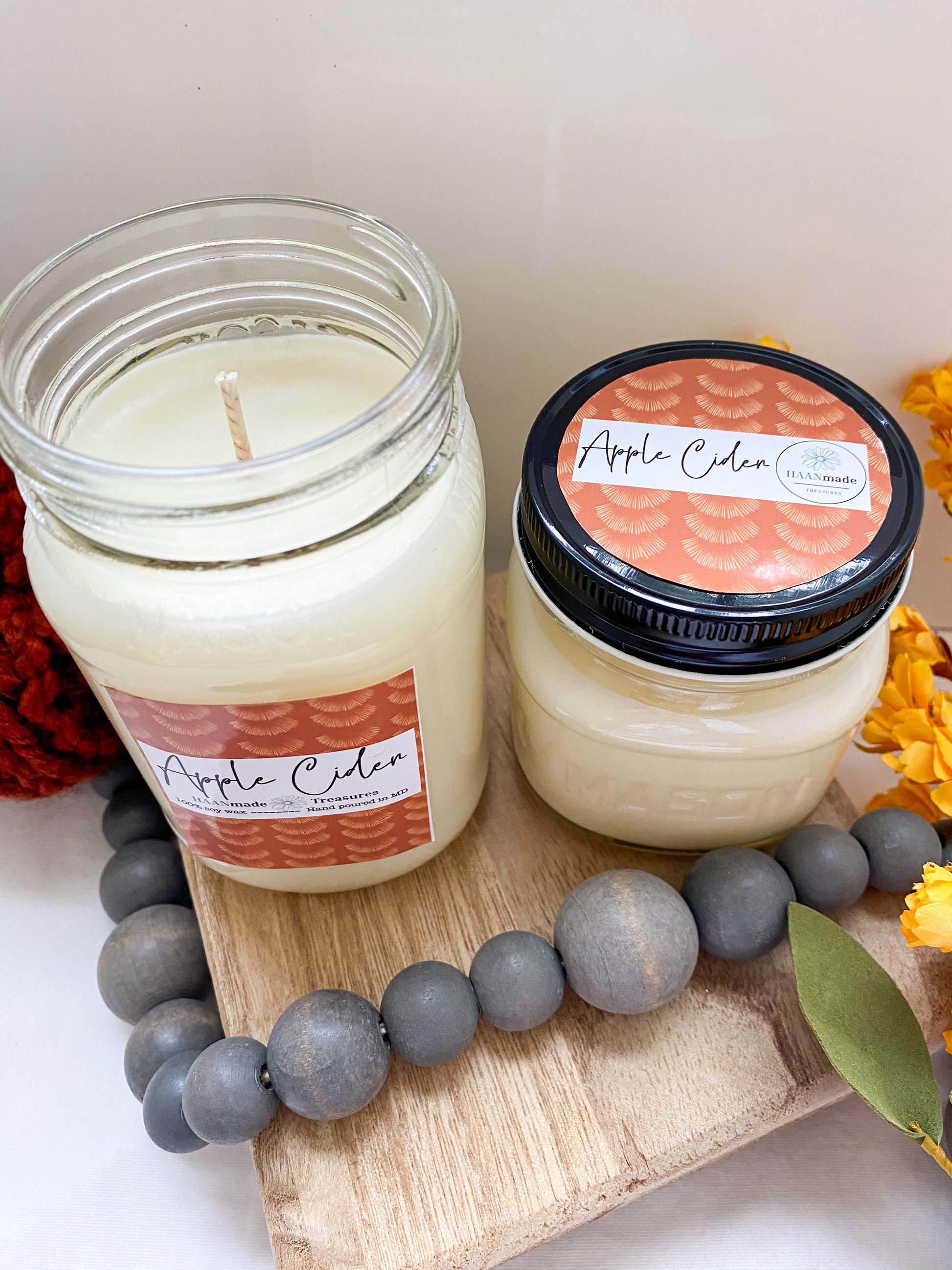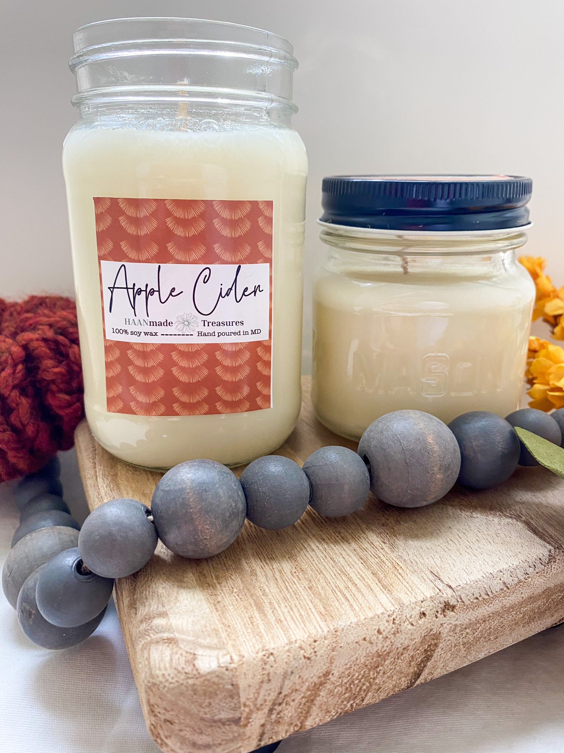 All HAANmade candles are made with 100% all natural soy wax and are hand poured in Maryland. I choose soy wax because agriculture is a huge part of my life. Soy candles are great because they are all natural, creating a cleaner burn. Unlike paraffin candles, soy candles do not release harmful chemicals into the air while burning. Some variations in appearance may occur in candles with each pour, but don't worry as these variations do not affect the smell.