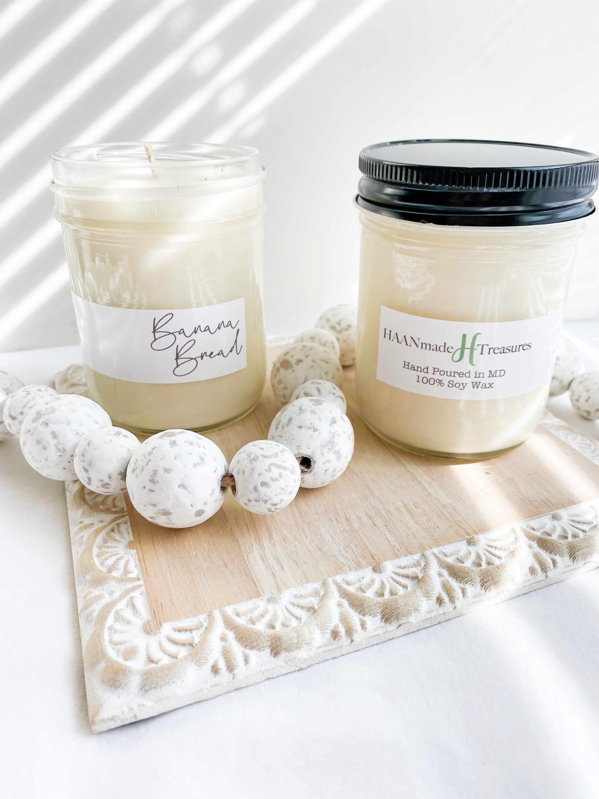 All HAANmade candles are made with 100% all natural soy wax and are hand poured in Maryland. I choose soy wax because agriculture is a huge part of my life. Soy candles are great because they are all natural, creating a cleaner burn. Unlike paraffin candles, soy candles do not release harmful chemicals into the air while burning. Some variations in appearance may occur in candles with each pour, but don't worry as these variations do not affect the smell.