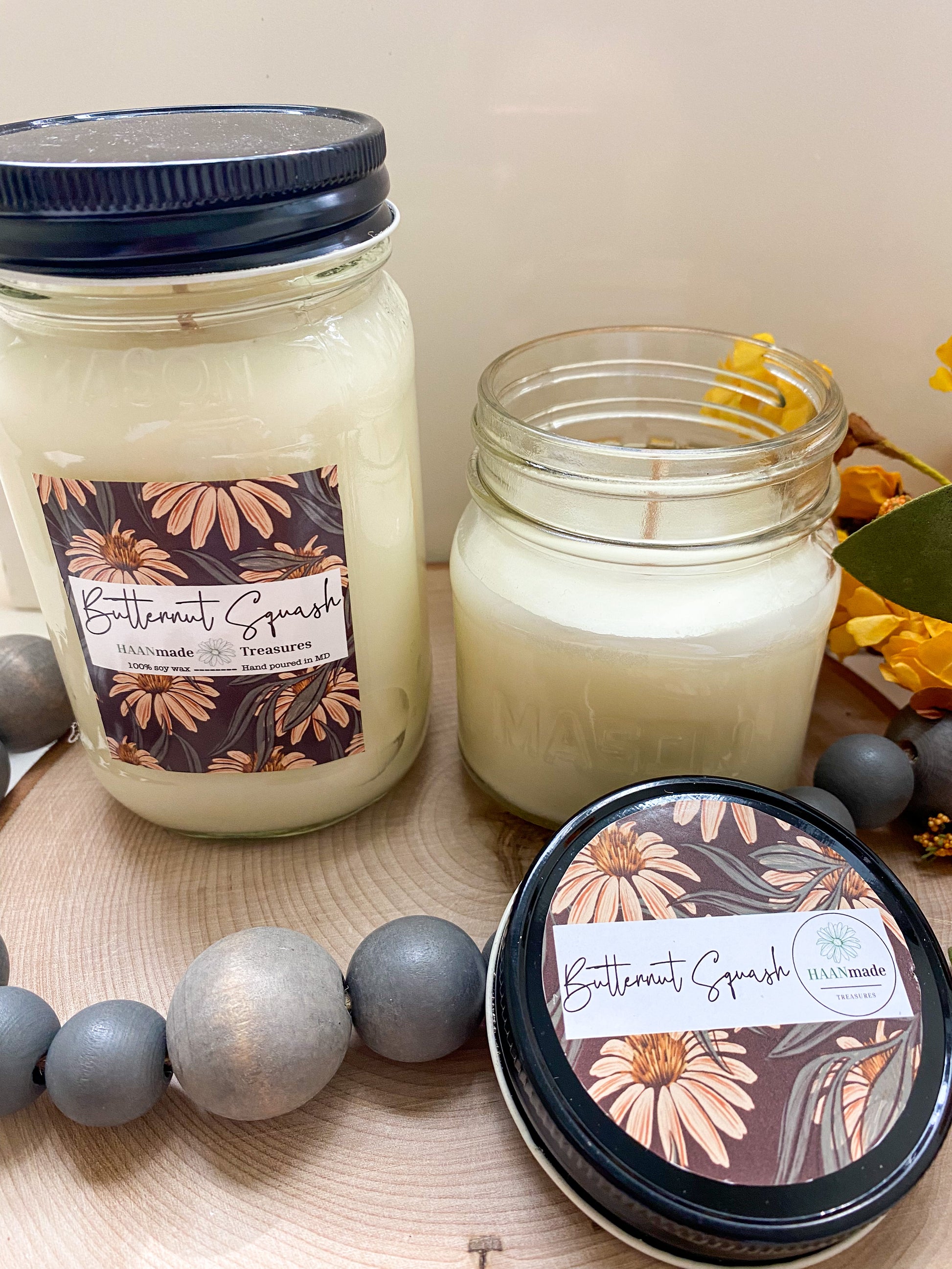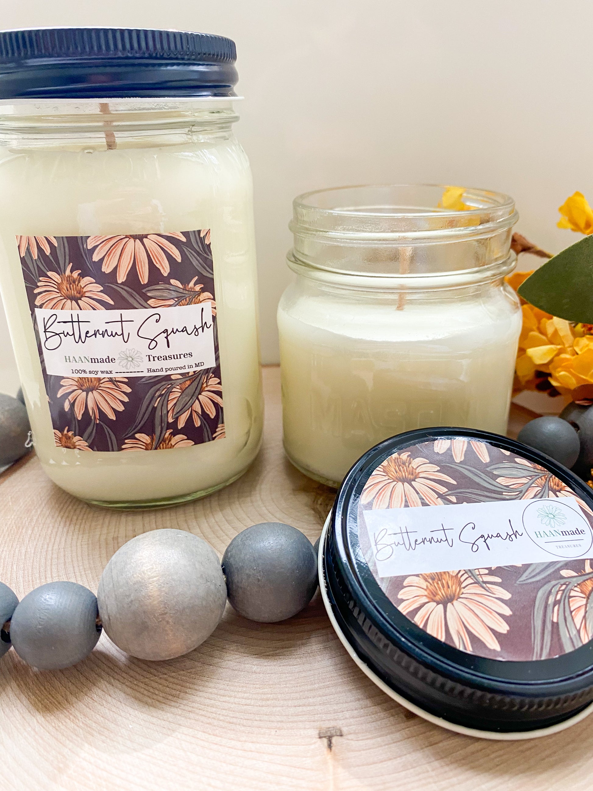 All HAANmade candles are made with 100% all natural soy wax and are hand poured in Maryland. I choose soy wax because agriculture is a huge part of my life. Soy candles are great because they are all natural, creating a cleaner burn. Unlike paraffin candles, soy candles do not release harmful chemicals into the air while burning. Some variations in appearance may occur in candles with each pour, but don't worry as these variations do not affect the smell.