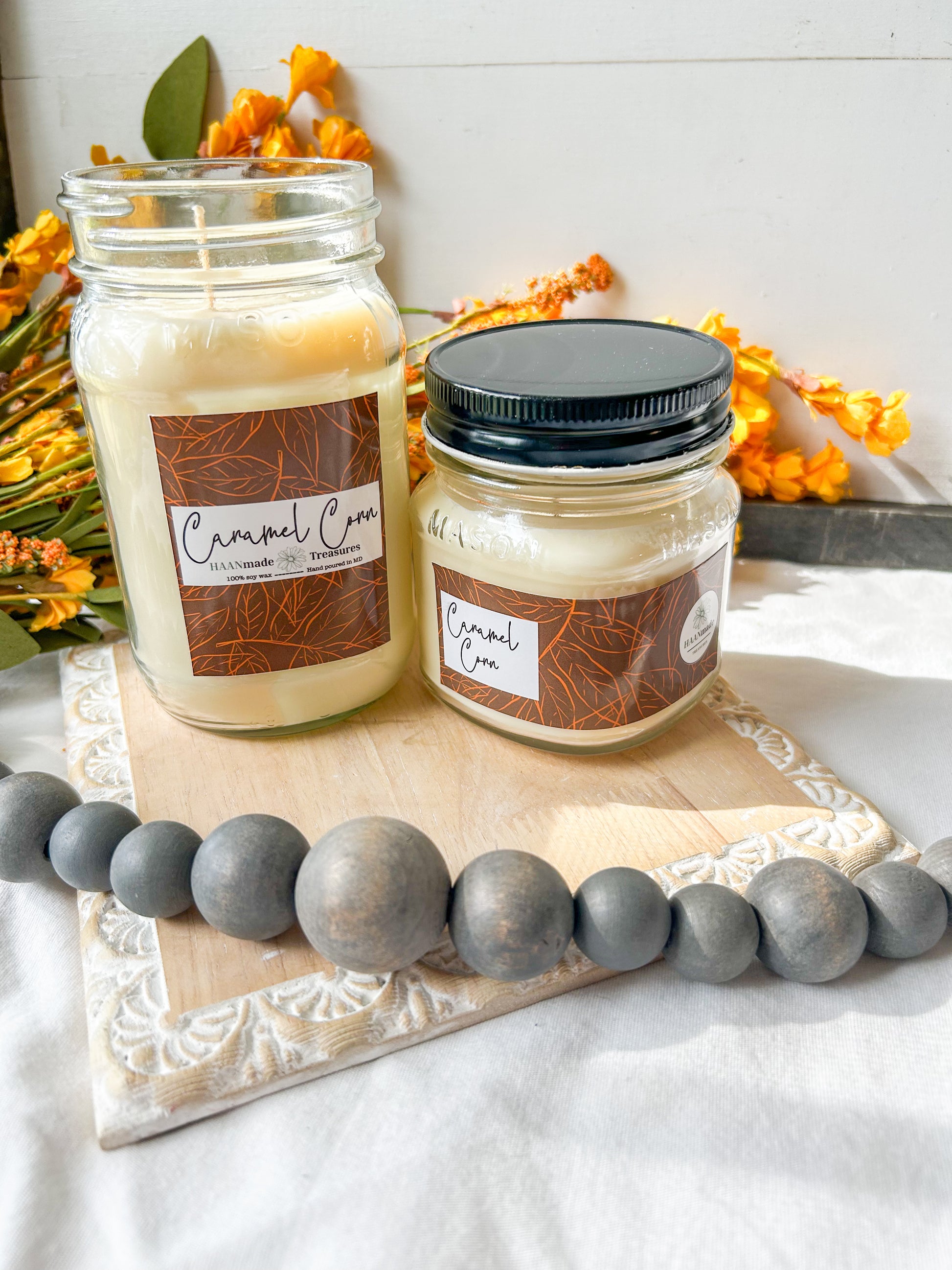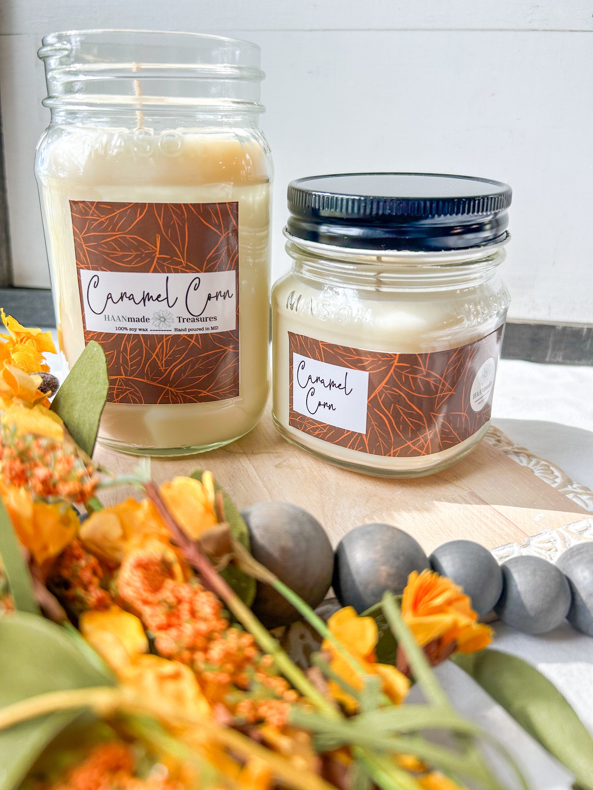 All HAANmade candles are made with 100% all natural soy wax and are hand poured in Indiana. I choose soy wax because agriculture is a huge part of my life. Soy candles are great because they are all natural, creating a cleaner burn. Unlike paraffin candles, soy candles do not release harmful chemicals into the air while burning. Some variations in appearance may occur in candles with each pour, but don't worry as these variations do not affect the smell.