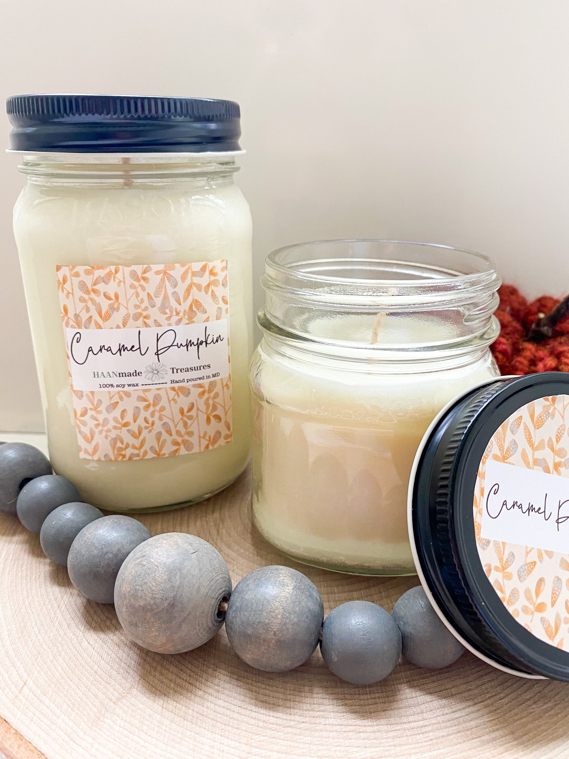All HAANmade candles are made with 100% all natural soy wax and are hand poured in Maryland. I choose soy wax because agriculture is a huge part of my life. Soy candles are great because they are all natural, creating a cleaner burn. Unlike paraffin candles, soy candles do not release harmful chemicals into the air while burning. Some variations in appearance may occur in candles with each pour, but don't worry as these variations do not affect the smell.