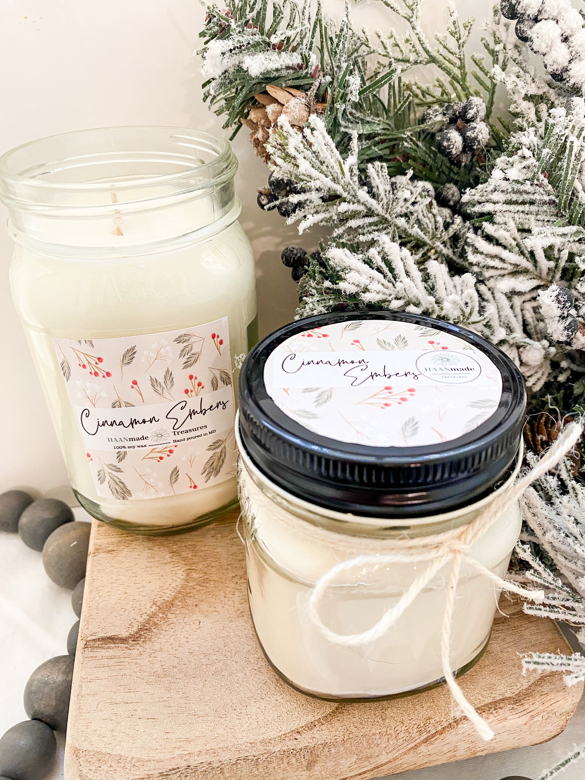 All HAANmade candles are made with 100% all natural soy wax and are hand poured in Maryland. I choose soy wax because agriculture is a huge part of my life. Soy candles are great because they are all natural, creating a cleaner burn. Unlike paraffin candles, soy candles do not release harmful chemicals into the air while burning. Some variations in appearance may occur in candles with each pour, but don't worry as these variations do not affect the smell.