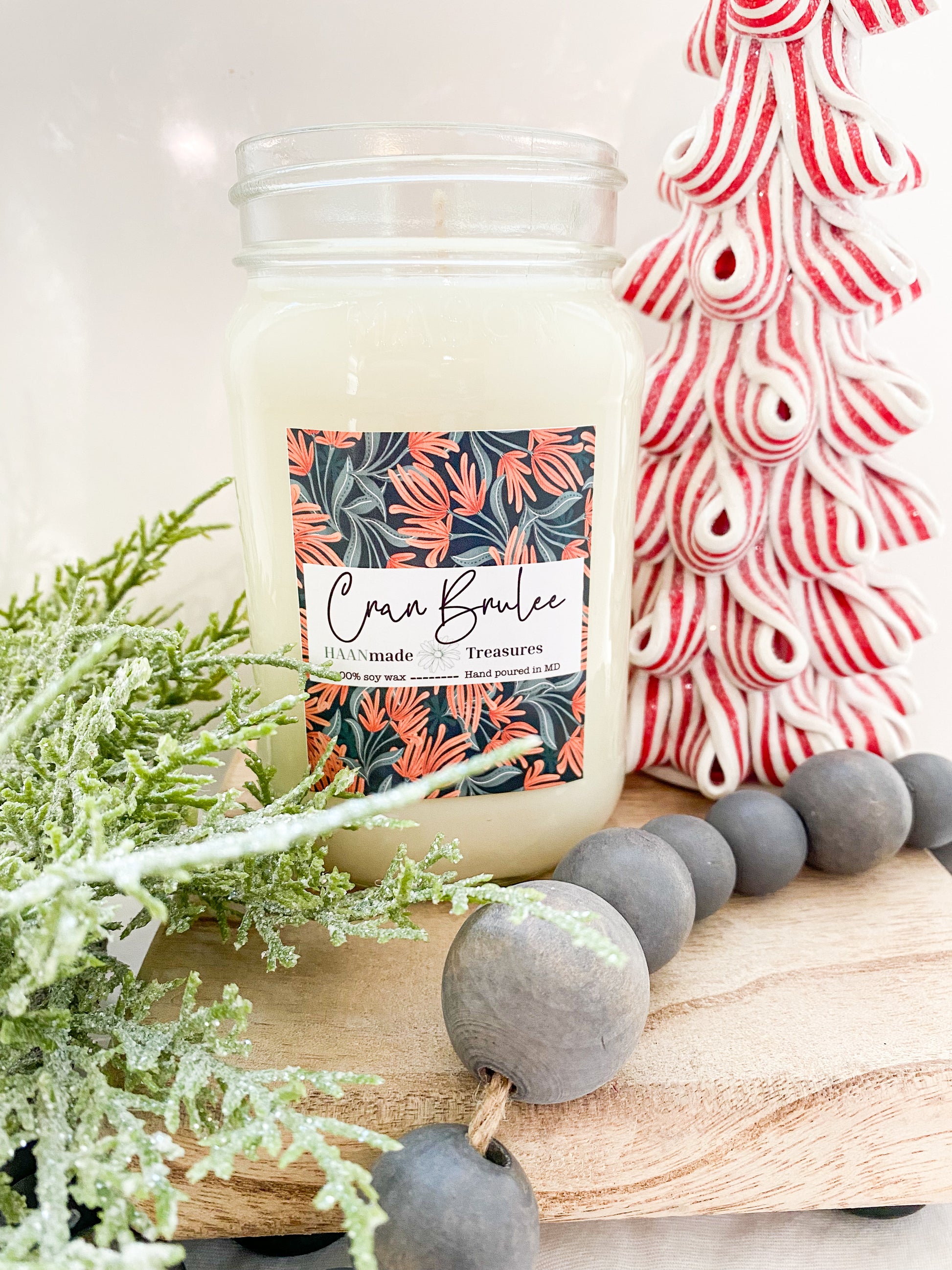 All HAANmade candles are made with 100% all natural soy wax and are hand poured in Maryland. I choose soy wax because agriculture is a huge part of my life. Soy candles are great because they are all natural, creating a cleaner burn. Unlike paraffin candles, soy candles do not release harmful chemicals into the air while burning. Some variations in appearance may occur in candles with each pour, but don't worry as these variations do not affect the smell.