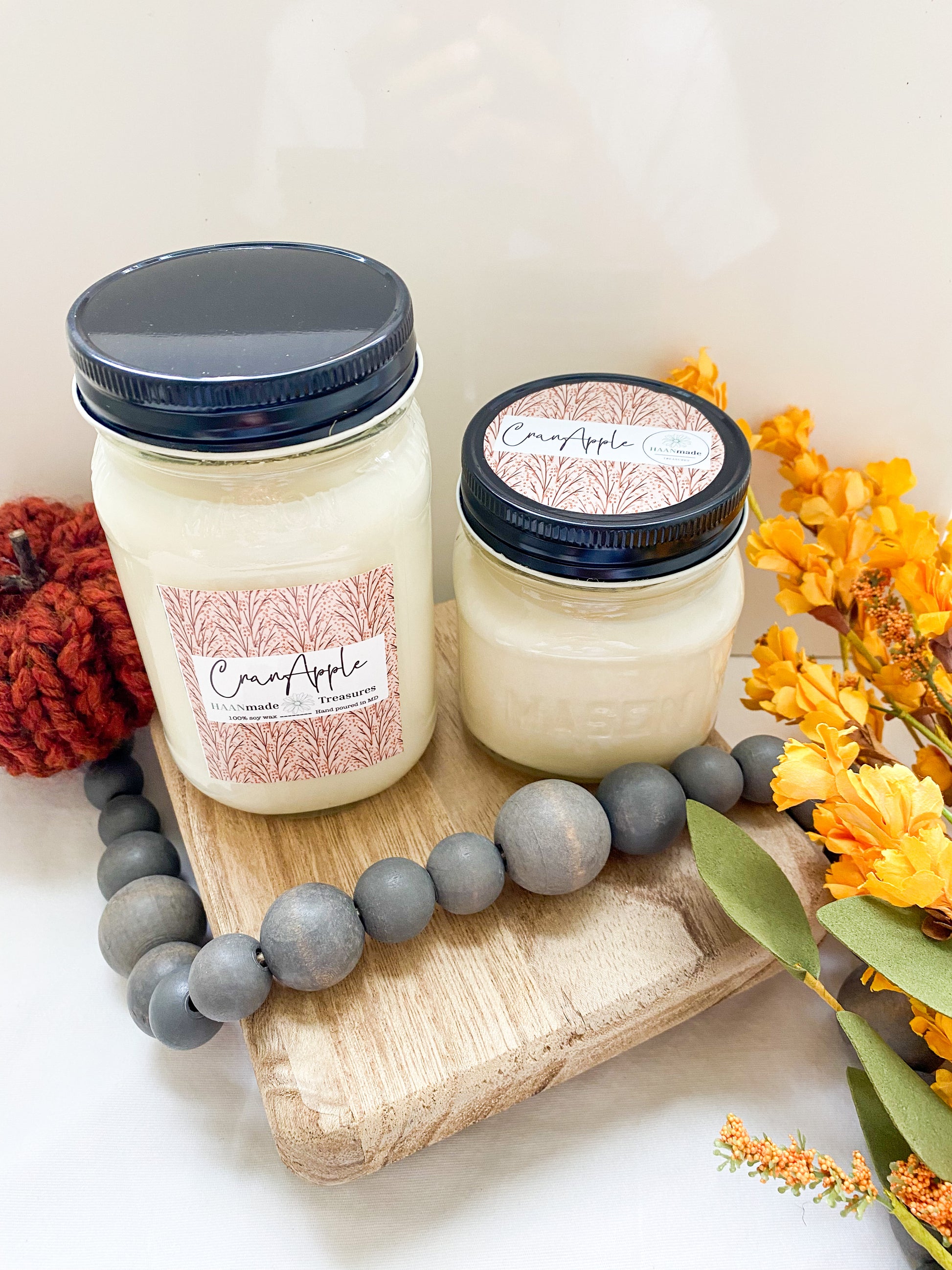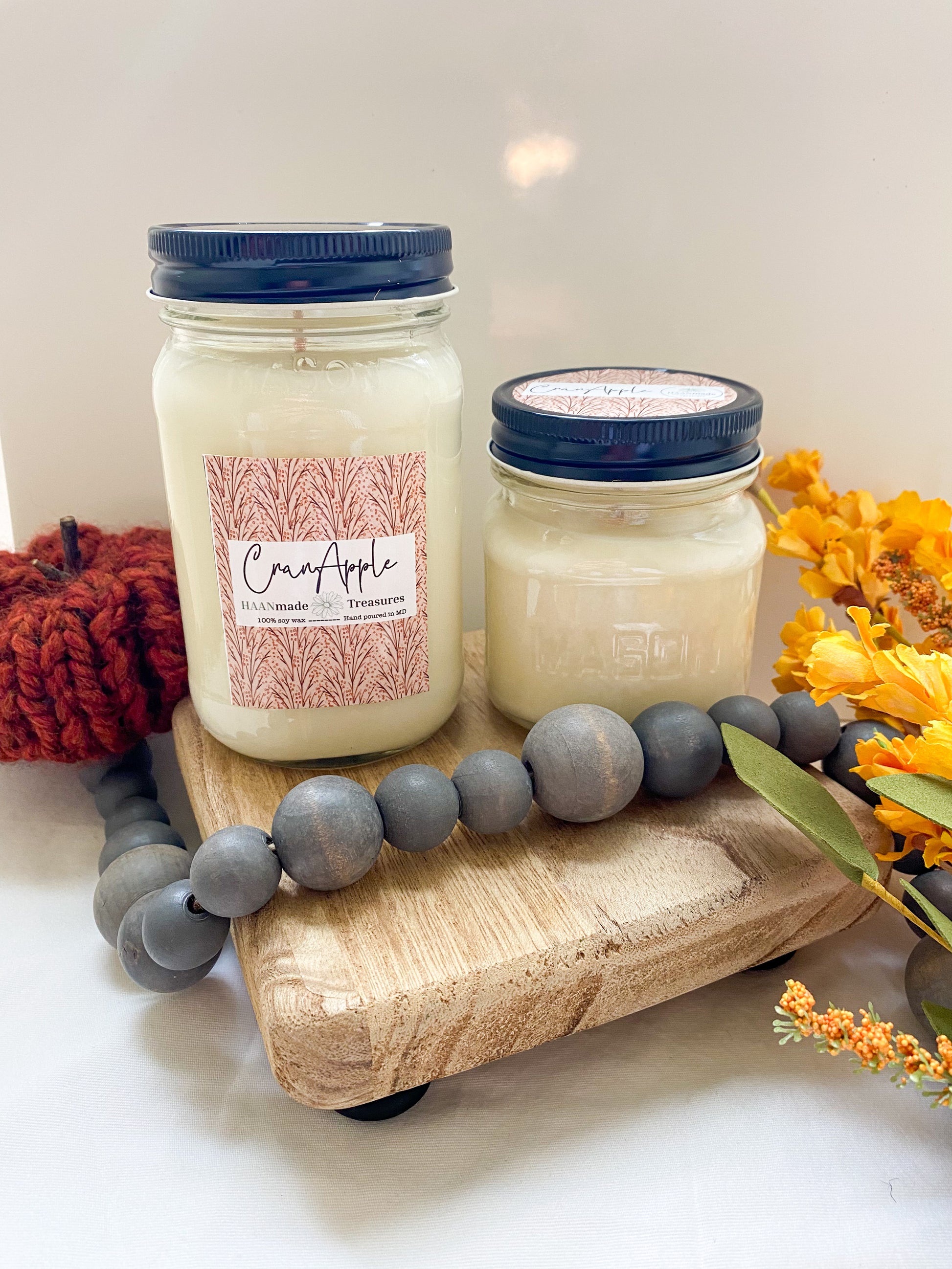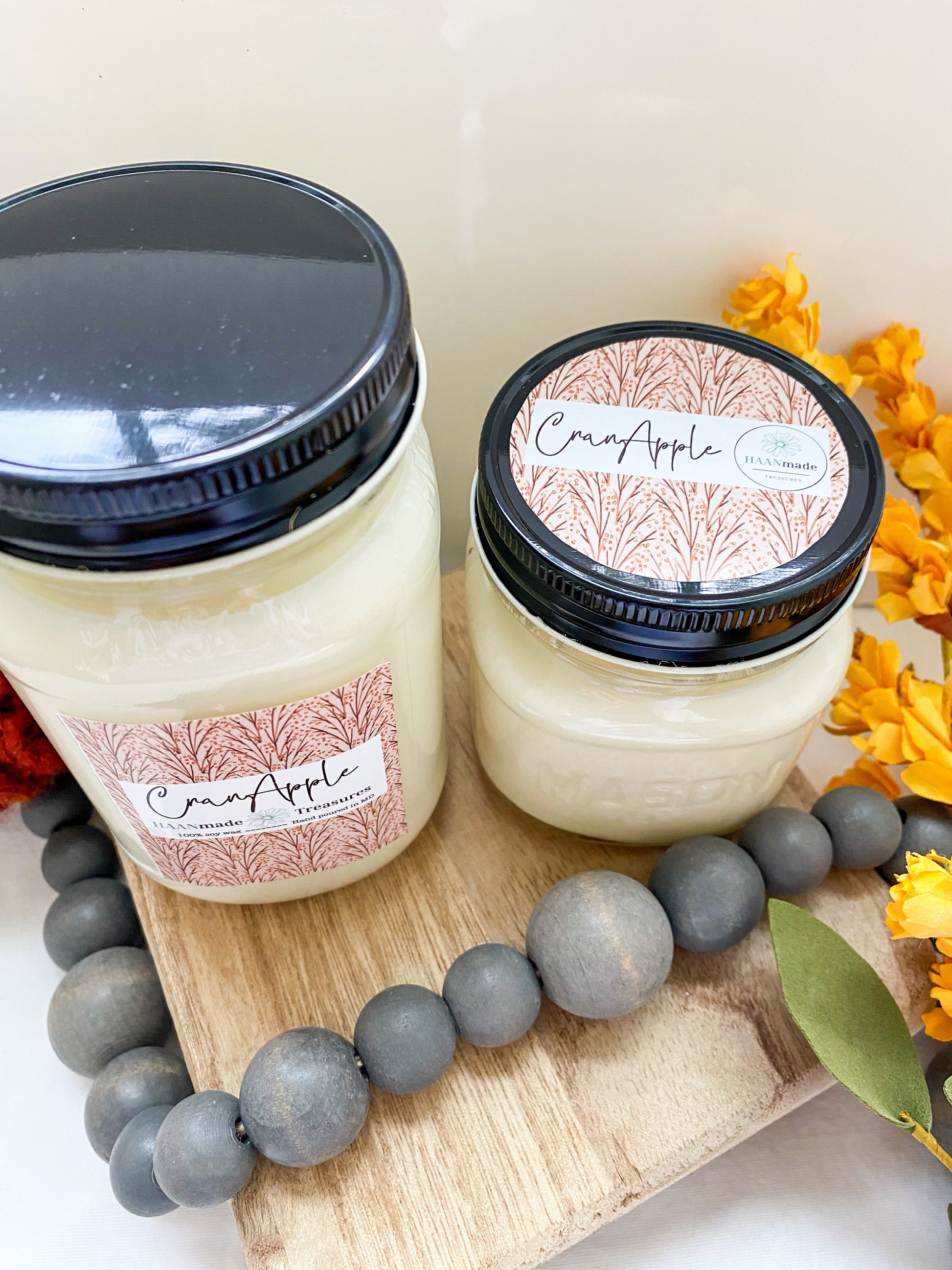 All HAANmade candles are made with 100% all natural soy wax and are hand poured in Maryland. I choose soy wax because agriculture is a huge part of my life. Soy candles are great because they are all natural, creating a cleaner burn. Unlike paraffin candles, soy candles do not release harmful chemicals into the air while burning. Some variations in appearance may occur in candles with each pour, but don't worry as these variations do not affect the smell.