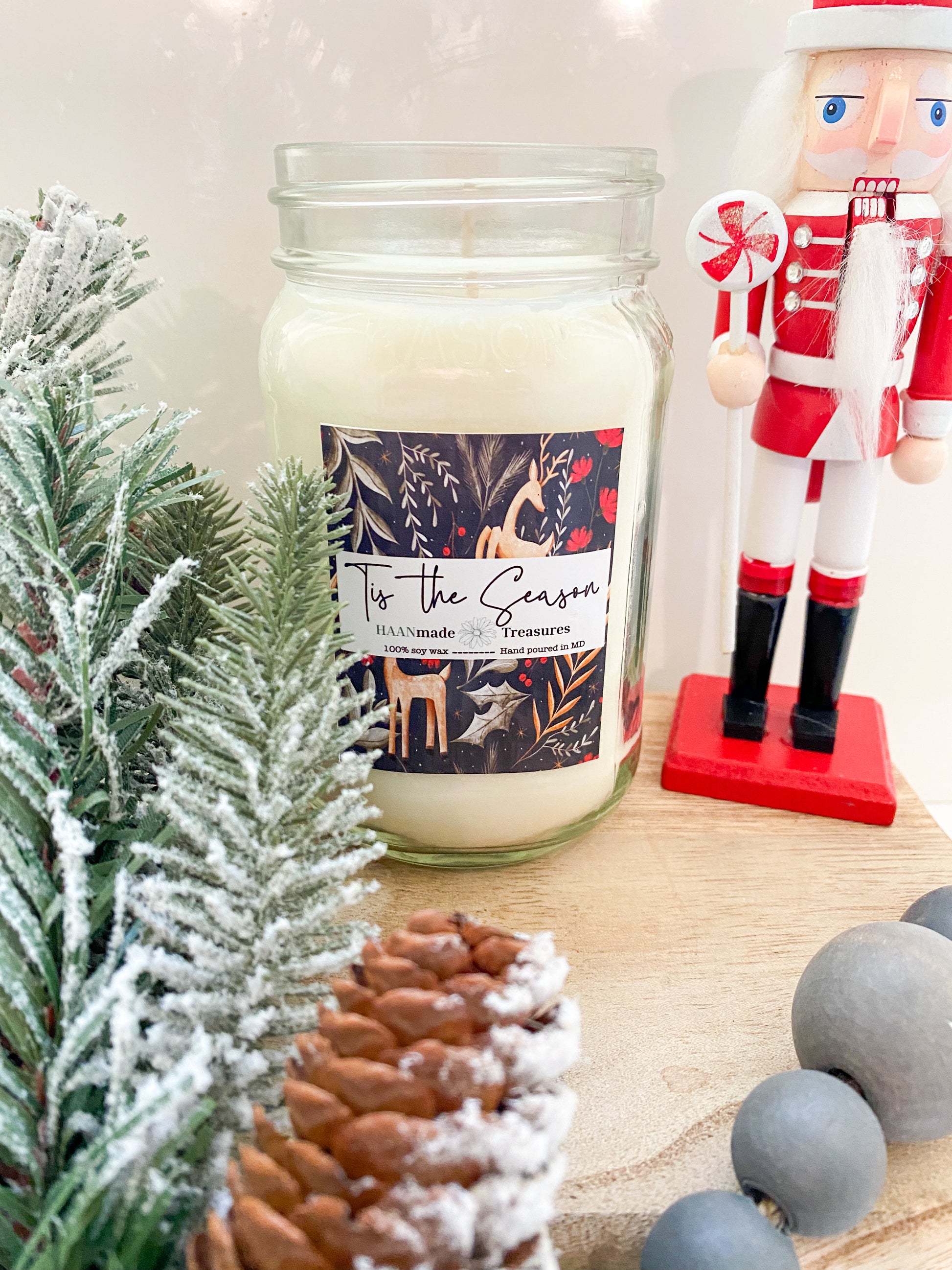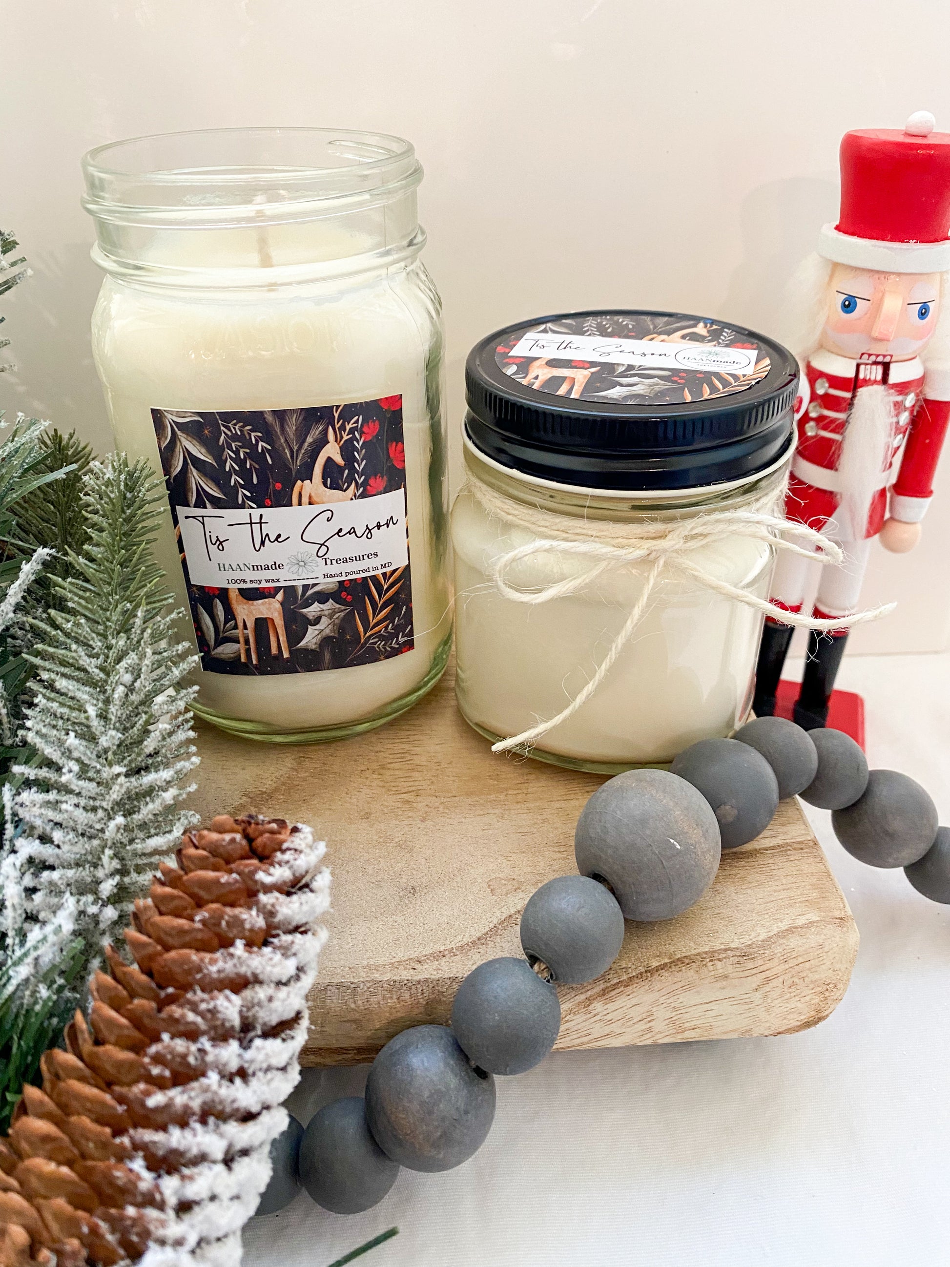 All HAANmade candles are made with 100% all natural soy wax and are hand poured in Maryland. I choose soy wax because agriculture is a huge part of my life. Soy candles are great because they are all natural, creating a cleaner burn. Unlike paraffin candles, soy candles do not release harmful chemicals into the air while burning. Some variations in appearance may occur in candles with each pour, but don't worry as these variations do not affect the smell.
