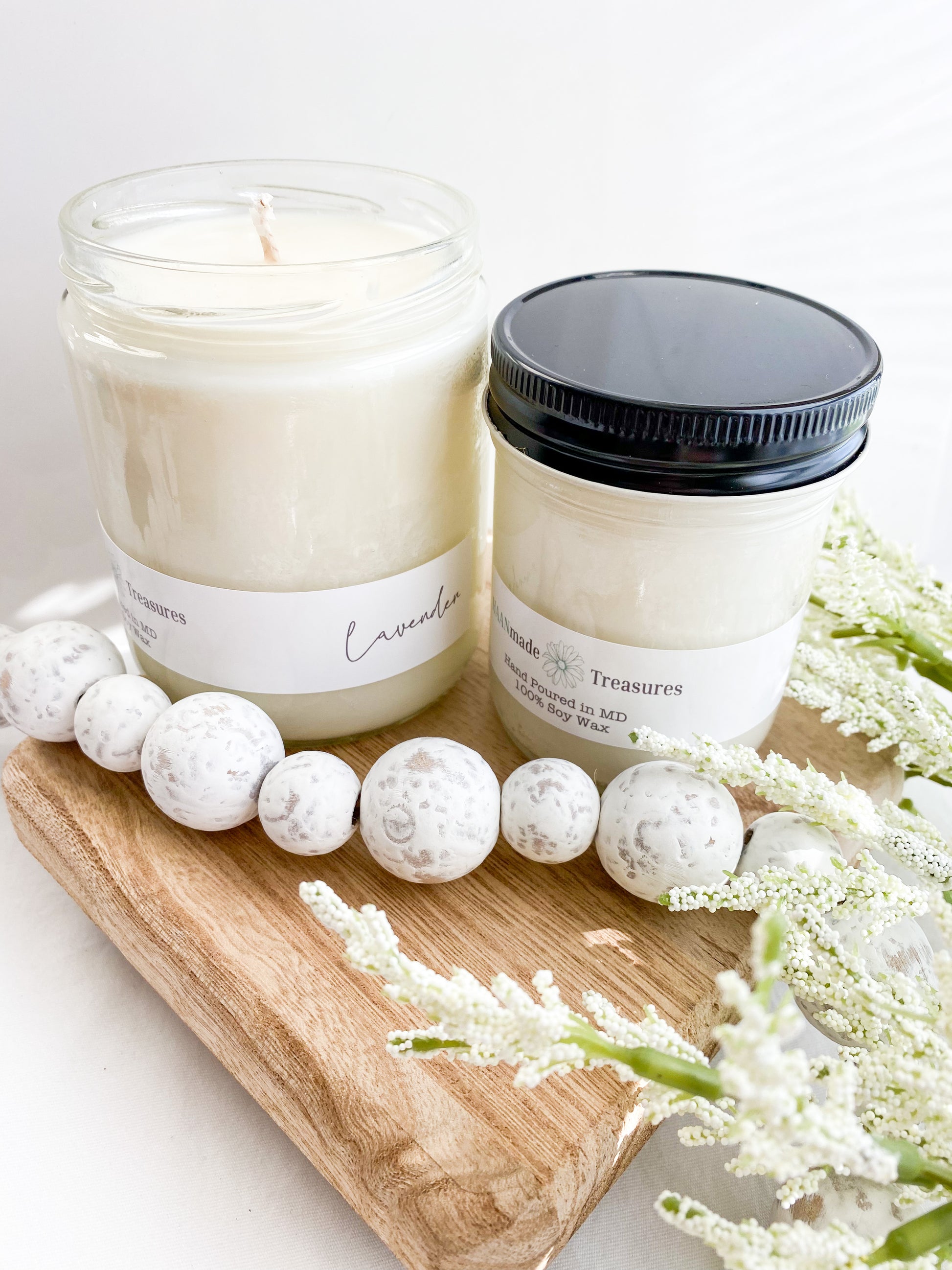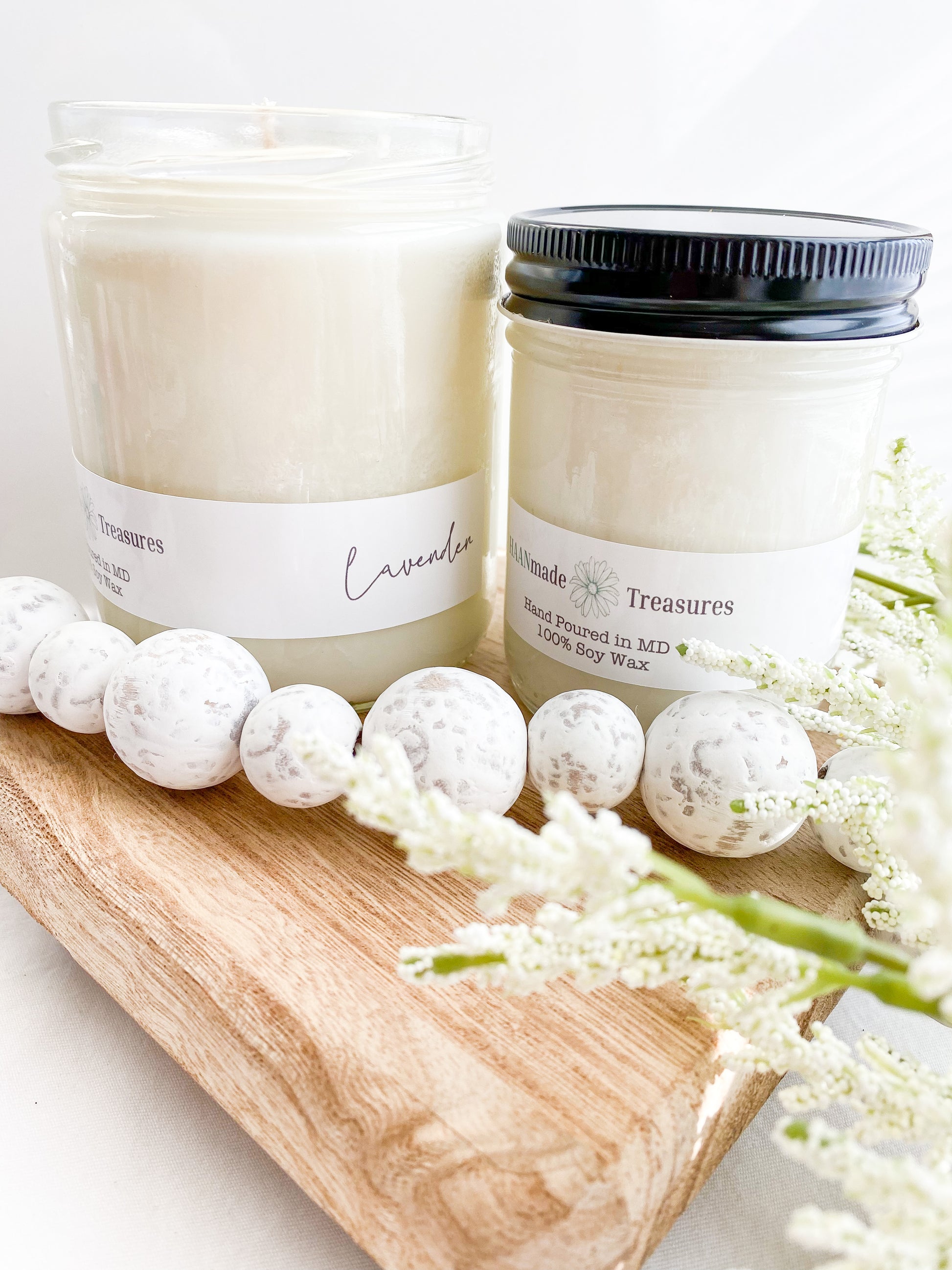 All HAANmade candles are made with 100% all natural soy wax and are hand poured in Maryland. I choose soy wax because agriculture is a huge part of my life. Soy candles are great because they are all natural, creating a cleaner burn. Unlike paraffin candles, soy candles do not release harmful chemicals into the air while burning. Some variations in appearance may occur in candles with each pour, but don't worry as these variations do not affect the smell.