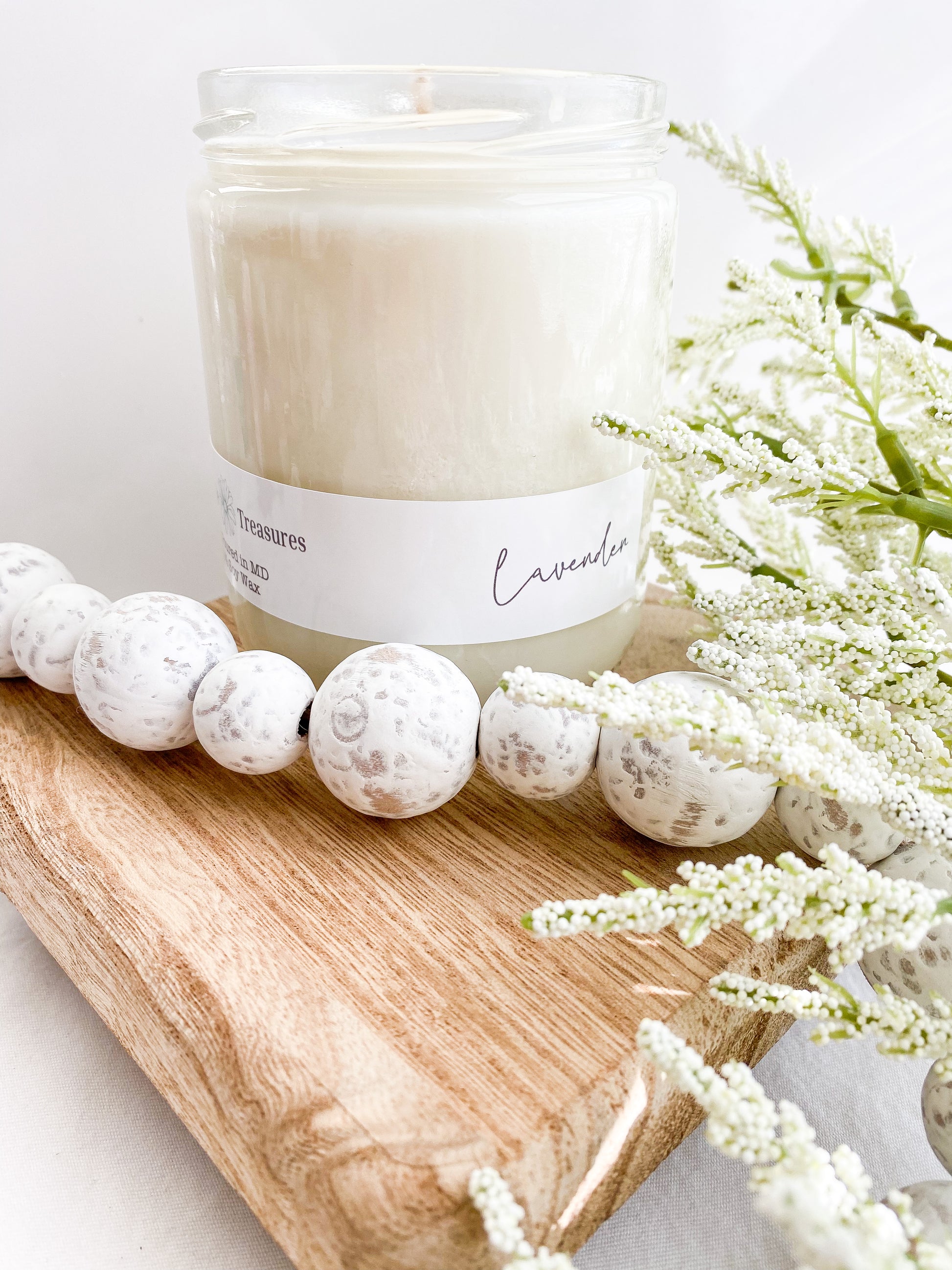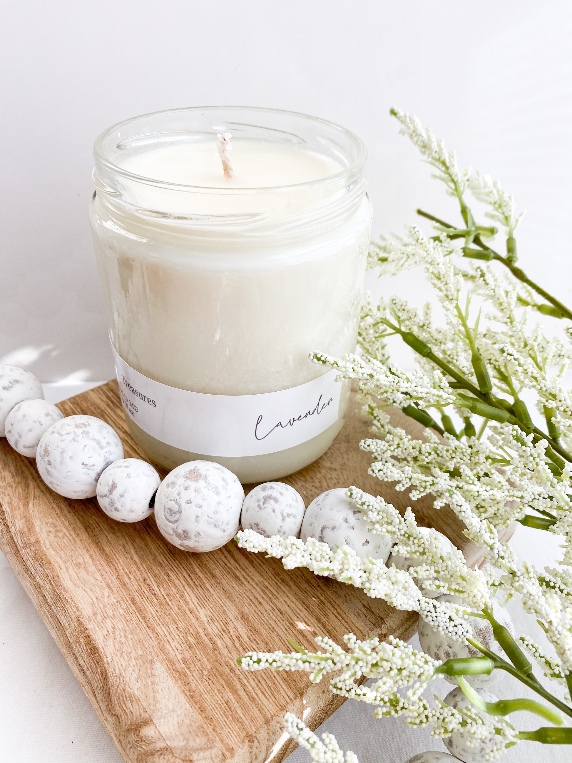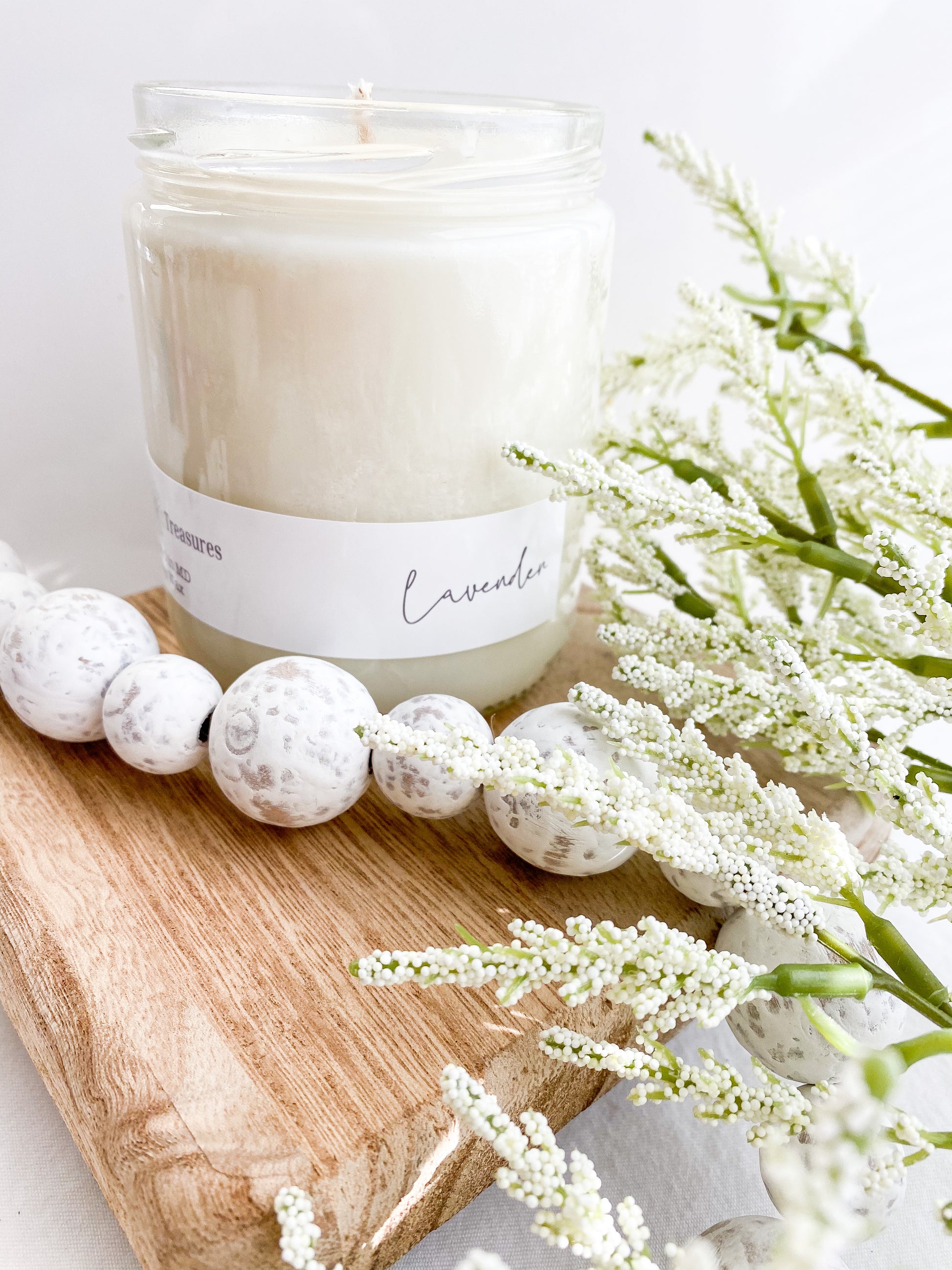 Create a calming environment in your home with this lavender candle infused with essential oils.