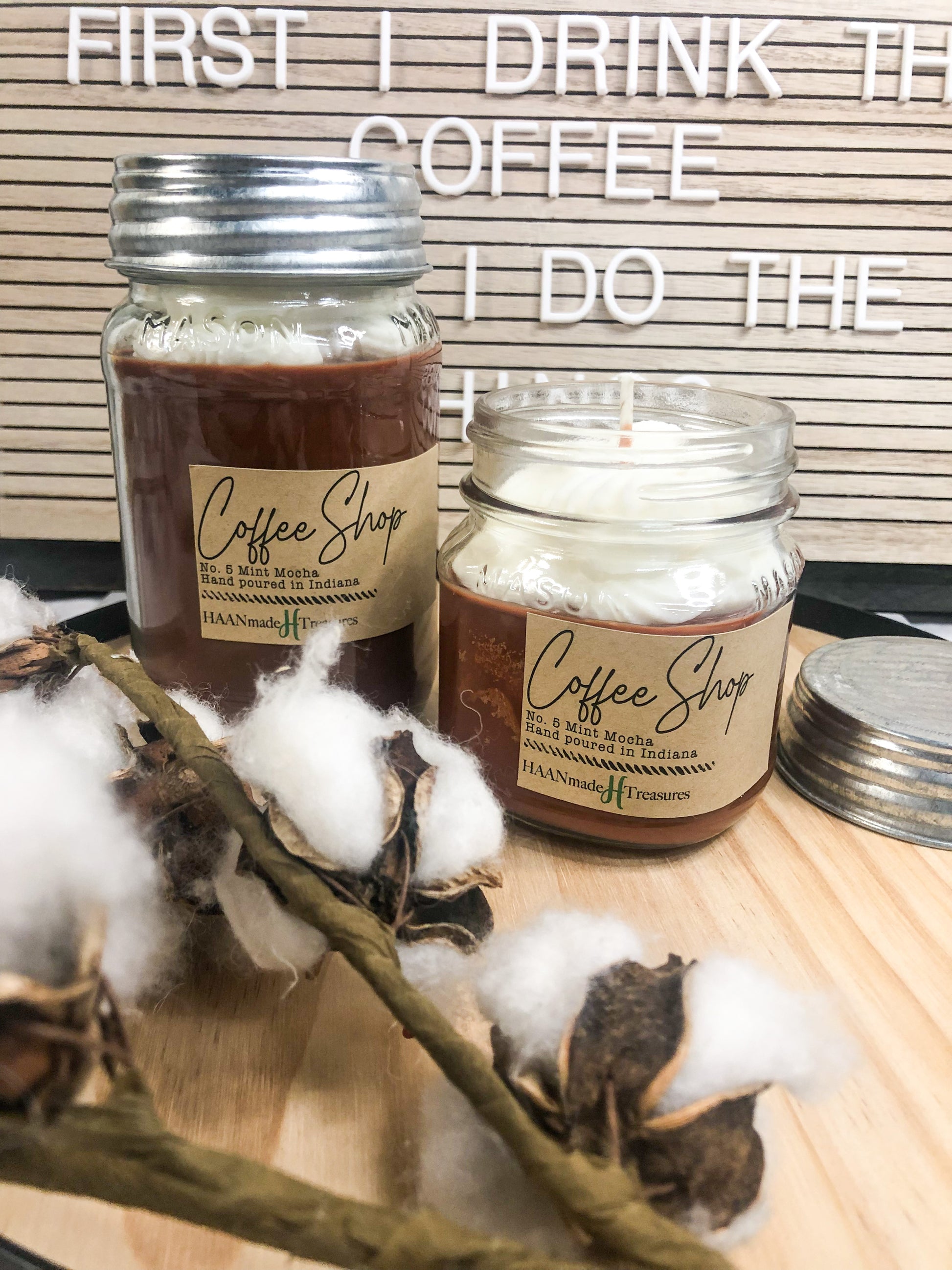All HAANmade candles are made with 100% all natural soy wax and are hand poured in Maryland. I choose soy wax because agriculture is a huge part of my life. Soy candles are great because they are all natural, creating a cleaner burn. Unlike paraffin candles, soy candles do not release harmful chemicals into the air while burning. Some variations in appearance may occur in candles with each pour, but don't worry as these variations do not affect the smell.