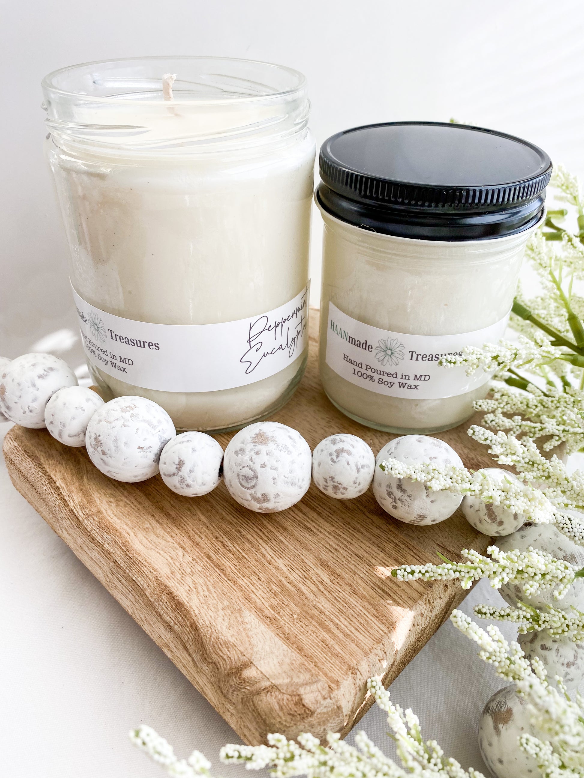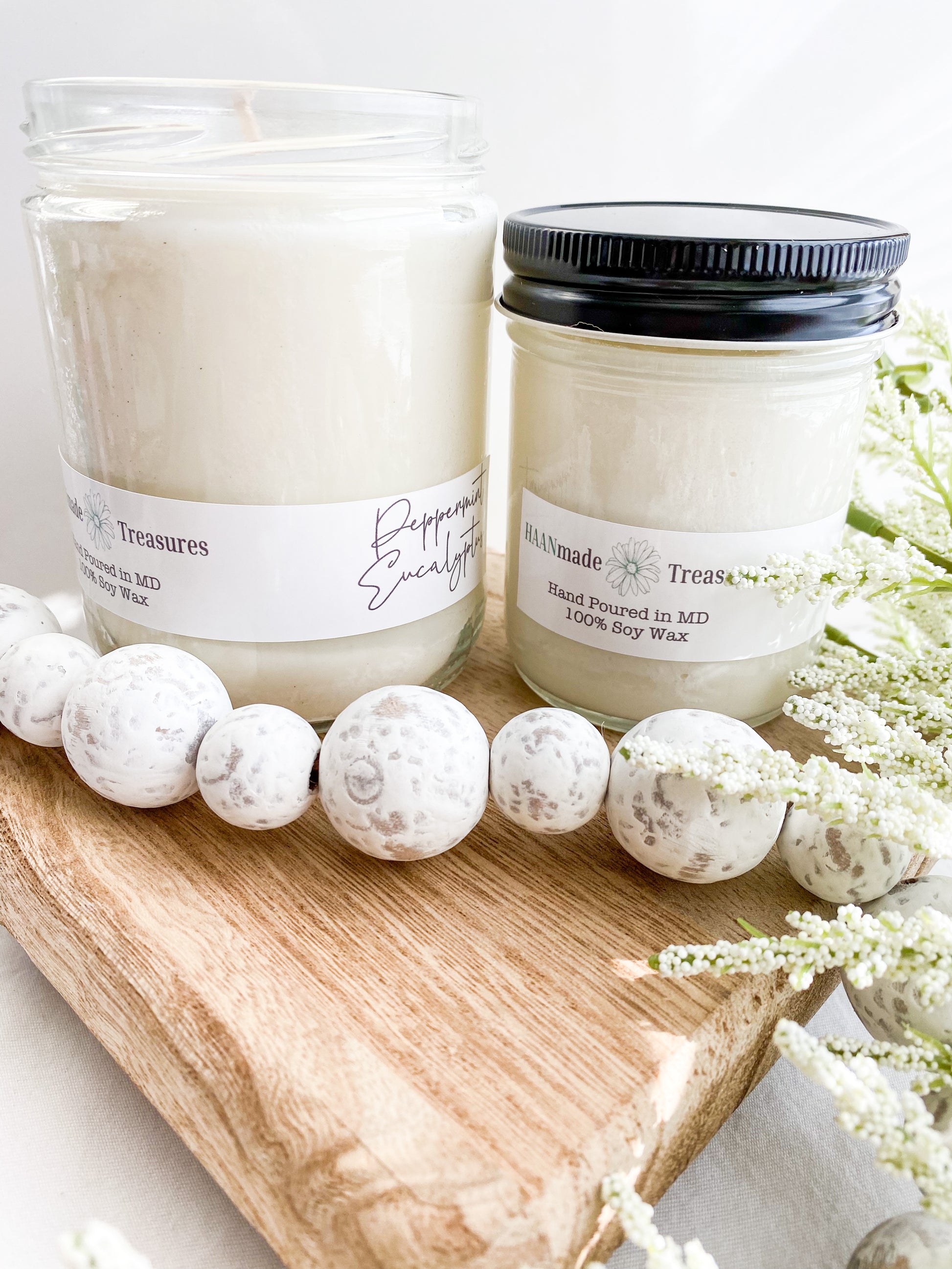 All HAANmade candles are made with 100% all natural soy wax and are hand poured in Maryland. I choose soy wax because agriculture is a huge part of my life. Soy candles are great because they are all natural, creating a cleaner burn. Unlike paraffin candles, soy candles do not release harmful chemicals into the air while burning. Some variations in appearance may occur in candles with each pour, but don't worry as these variations do not affect the smell.