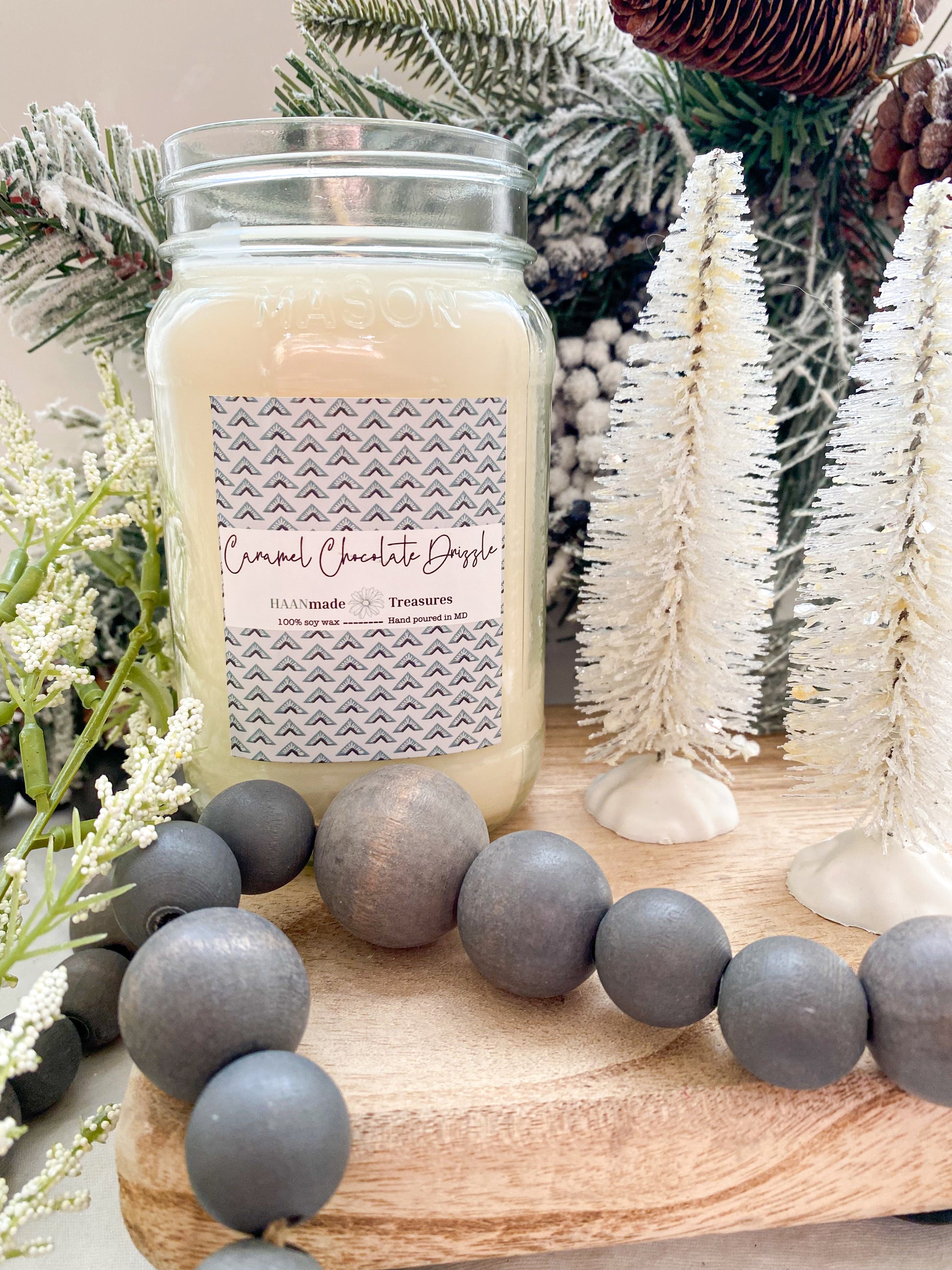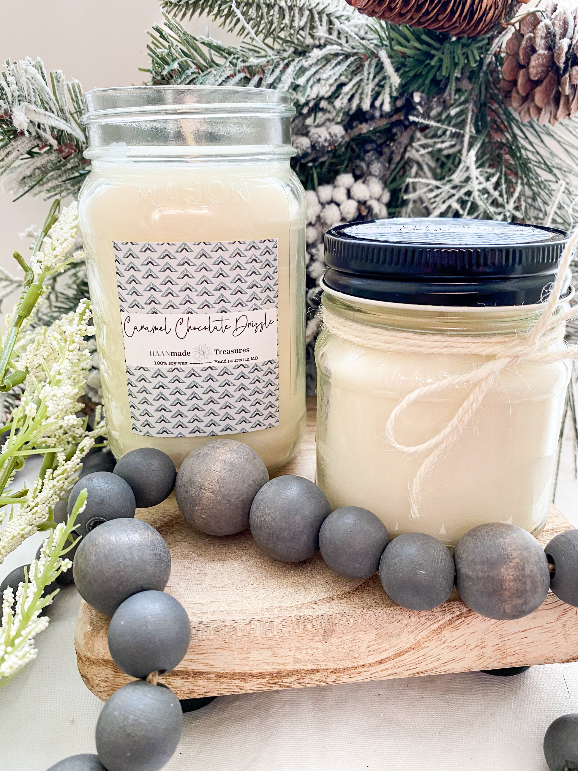 All HAANmade candles are made with 100% all natural soy wax and are hand poured in Maryland. I choose soy wax because agriculture is a huge part of my life. Soy candles are great because they are all natural, creating a cleaner burn. Unlike paraffin candles, soy candles do not release harmful chemicals into the air while burning. Some variations in appearance may occur in candles with each pour, but don't worry as these variations do not affect the smell.
