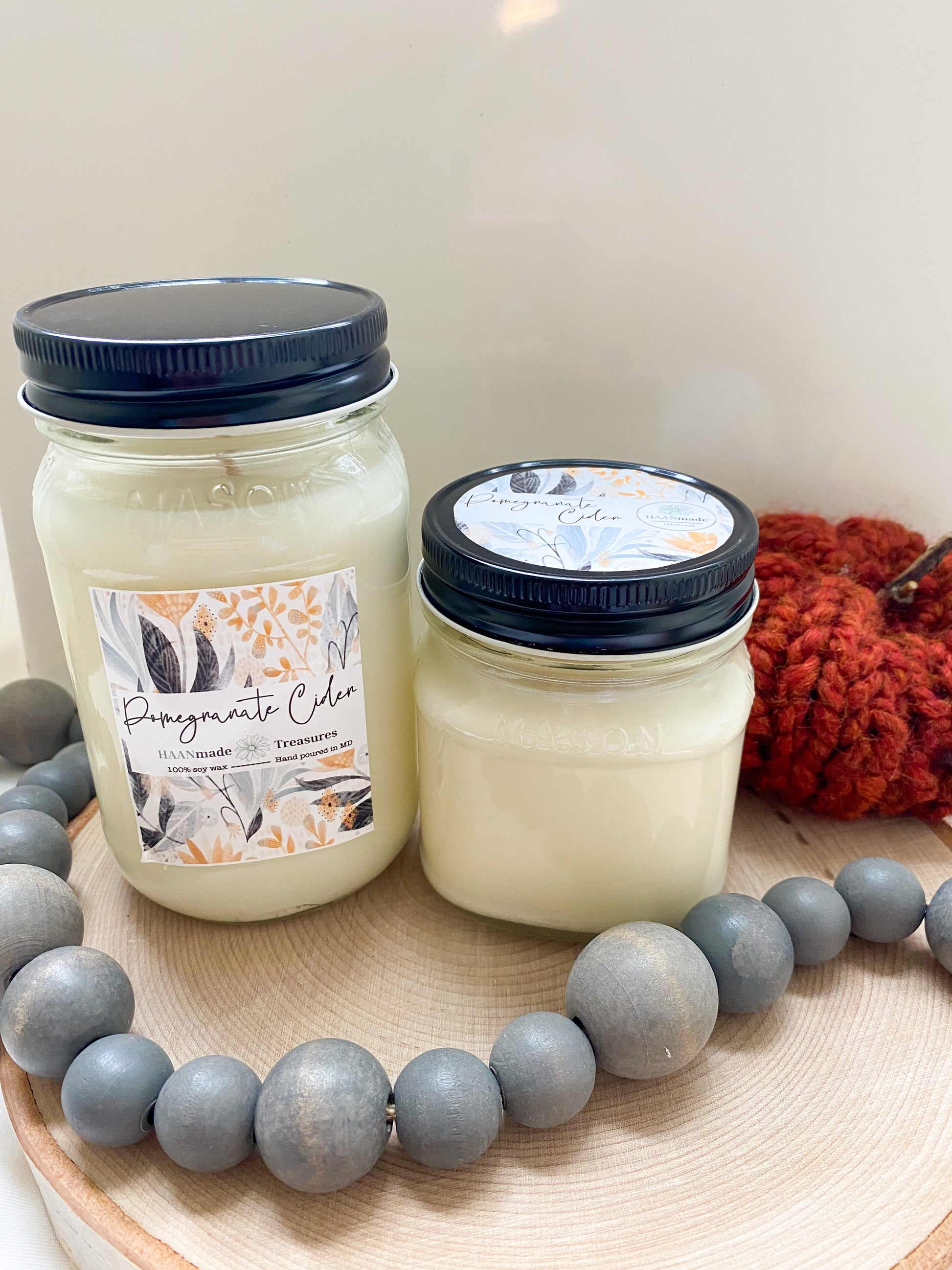 All HAANmade candles are made with 100% all natural soy wax and are hand poured in Maryland. I choose soy wax because agriculture is a huge part of my life. Soy candles are great because they are all natural, creating a cleaner burn. Unlike paraffin candles, soy candles do not release harmful chemicals into the air while burning. Some variations in appearance may occur in candles with each pour, but don't worry as these variations do not affect the smell.