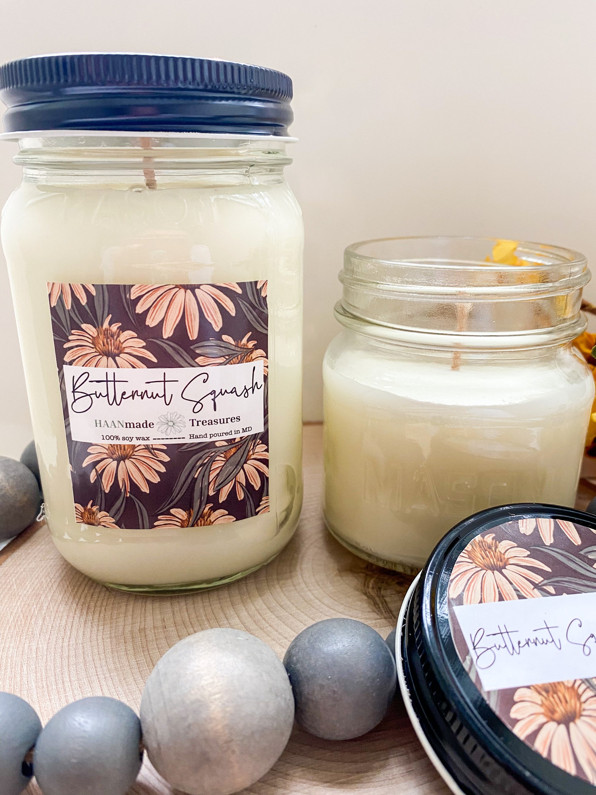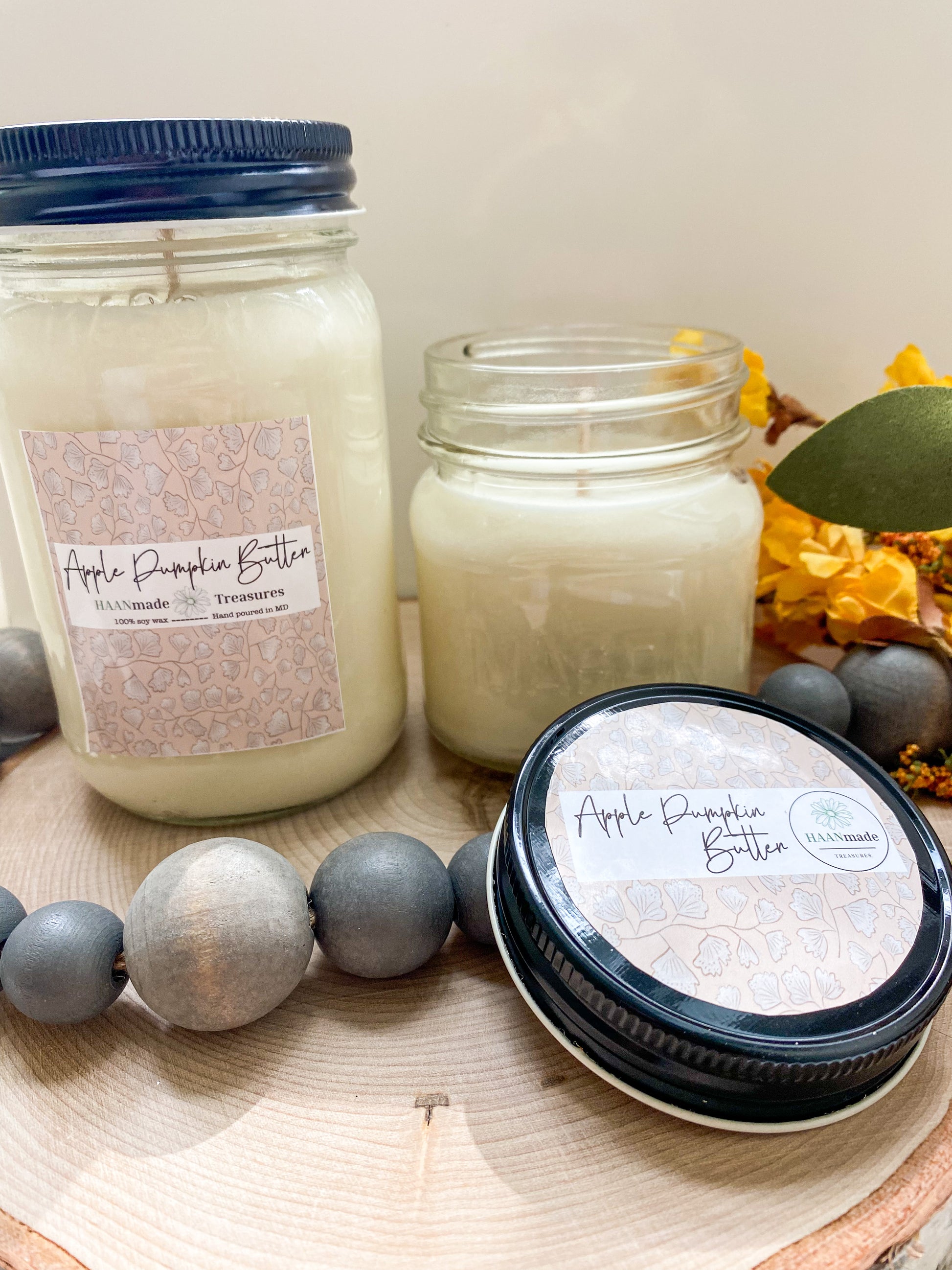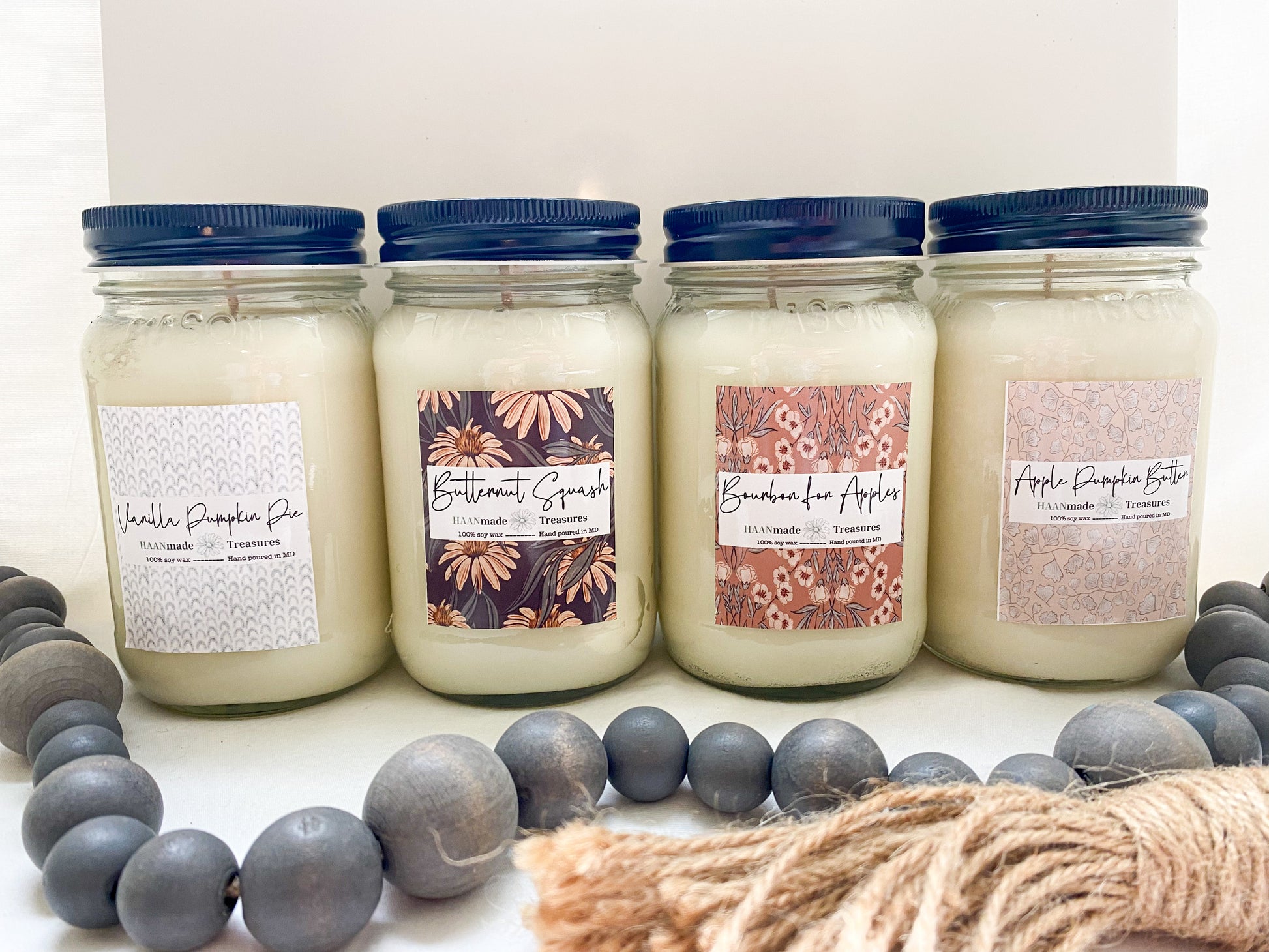 All HAANmade candles are made with 100% all natural soy wax and are hand poured in Maryland. I choose soy wax because agriculture is a huge part of my life. Soy candles are great because they are all natural, creating a cleaner burn. Unlike paraffin candles, soy candles do not release harmful chemicals into the air while burning. Some variations in appearance may occur in candles with each pour, but don't worry as these variations do not affect the smell.