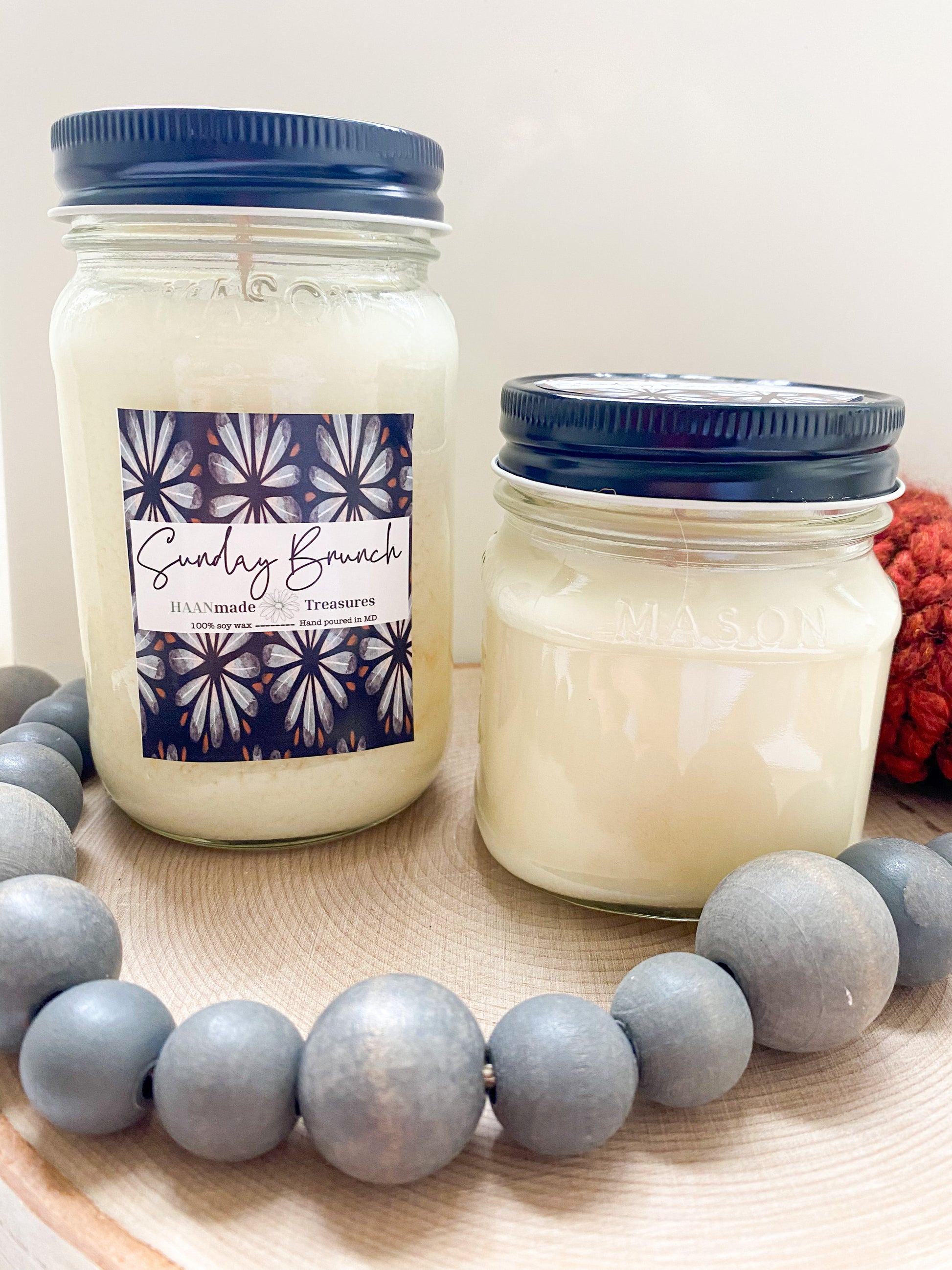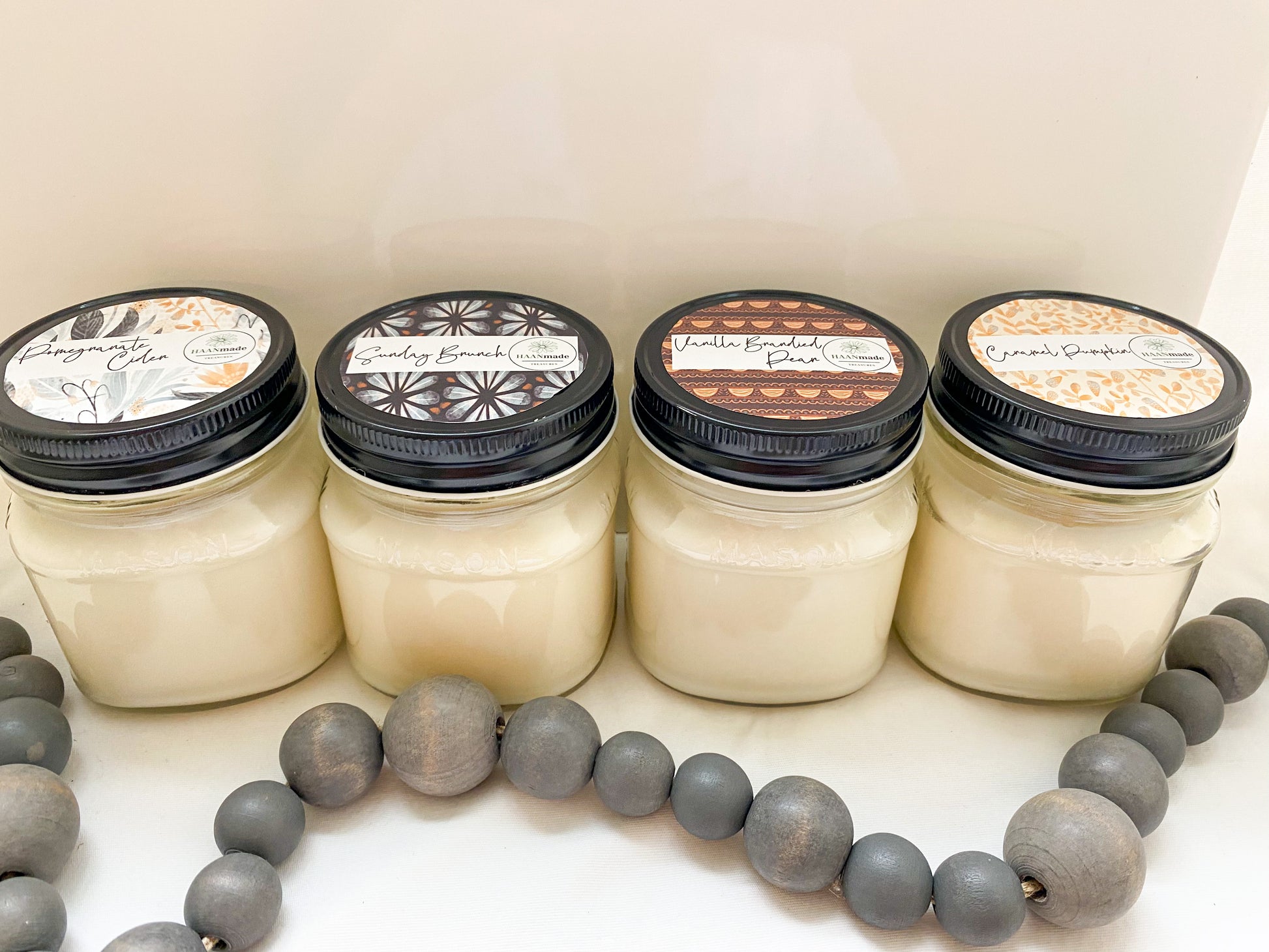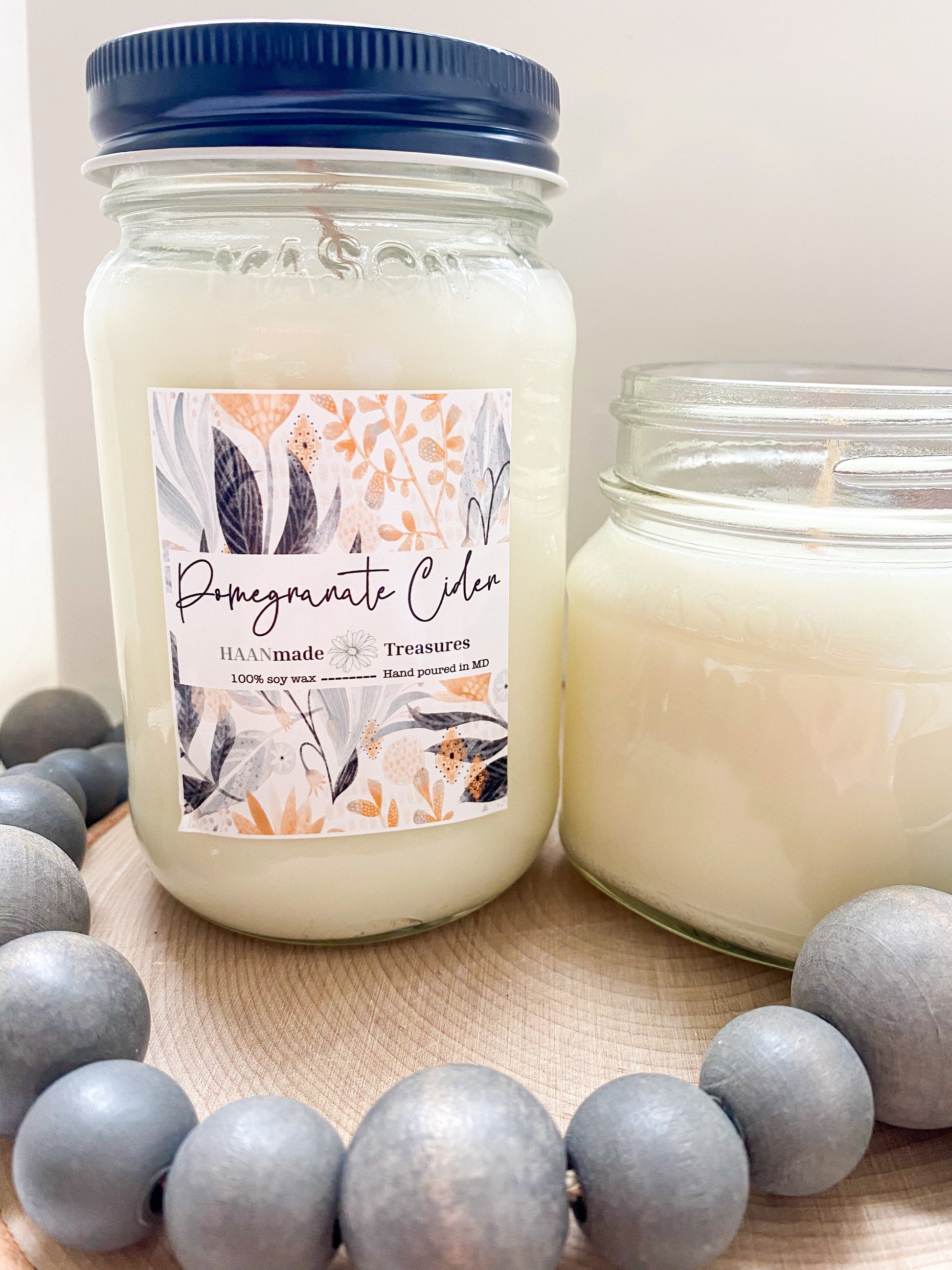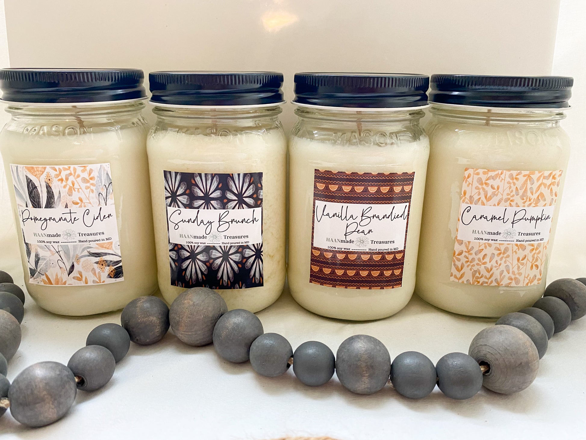 All HAANmade candles are made with 100% all natural soy wax and are hand poured in Maryland. I choose soy wax because agriculture is a huge part of my life. Soy candles are great because they are all natural, creating a cleaner burn. Unlike paraffin candles, soy candles do not release harmful chemicals into the air while burning. Some variations in appearance may occur in candles with each pour, but don't worry as these variations do not affect the smell.