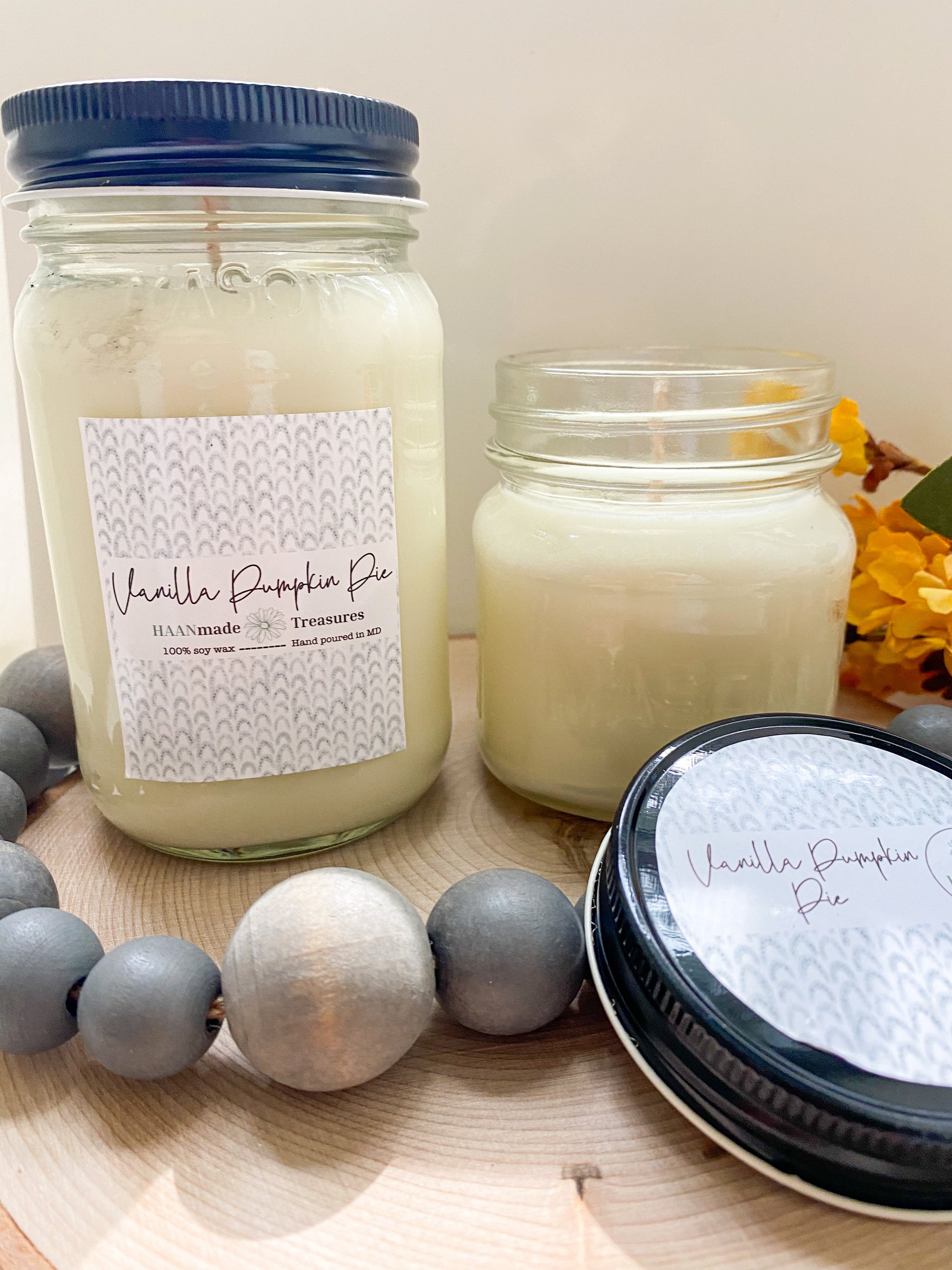 All HAANmade candles are made with 100% all natural soy wax and are hand poured in Maryland. I choose soy wax because agriculture is a huge part of my life. Soy candles are great because they are all natural, creating a cleaner burn. Unlike paraffin candles, soy candles do not release harmful chemicals into the air while burning. Some variations in appearance may occur in candles with each pour, but don't worry as these variations do not affect the smell.